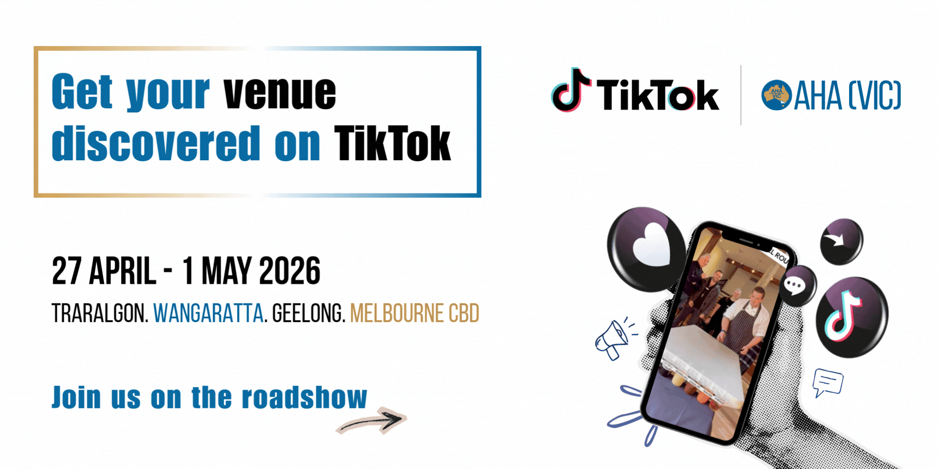 TikTok is where your next generation of locals and visitors decide where to eat, drink and stay. Join us for a practical TikTok for Hospitality Masterclass and an optional Dinner with local MPs in your region.